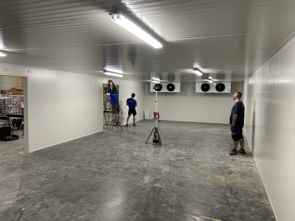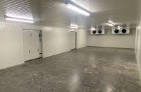 Csomagolt élelmiszer, és tejtermék – sajtok forgalmazásával  foglalkozó cégnek 1db 200m3-es normál hűtésű ( 0 – +5C ) -os komplett hűtőház telepítését valósítottunk meg.